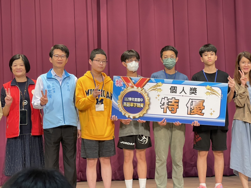 恭喜803林小龍同學榮獲「桃園市112學年度國中英語單字競賽」特優!!感謝張束明老師、董登月老師、陳秋珍老師共同指導!!