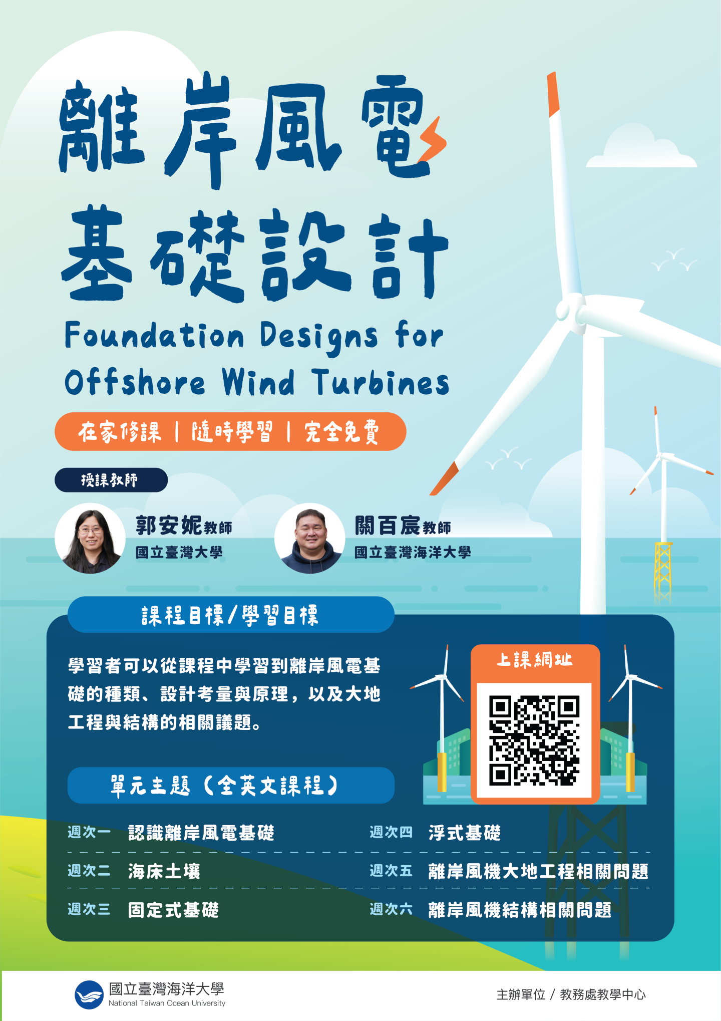 最新消息-研習資訊:國立臺灣海洋大學開設「離岸風電基礎設計」磨課師線上課程-桃園市立瑞坪國民中學-學習型學校